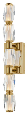 24" LED SCONCE WITH FACETED CRYSTAL JEWELS WITH RECTANGULAR BACK PLATE GOLD FRAME WITH CLEAR BEVELED CRYSTAL 3000K, 90CRI, 790 LUMENS