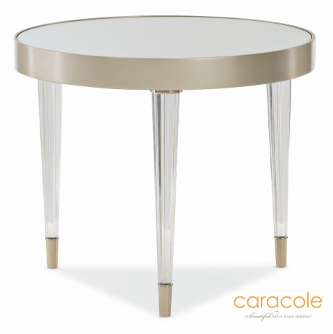 ROUND MIRRORED TOP END TABLE ON