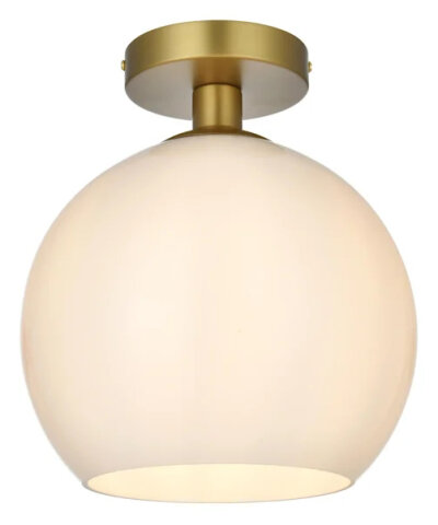 10 INCH SEMI FLUSH MOUNT WITH GLASS GLOBE SATIN GOLD, FROSTED WHITE GLASS