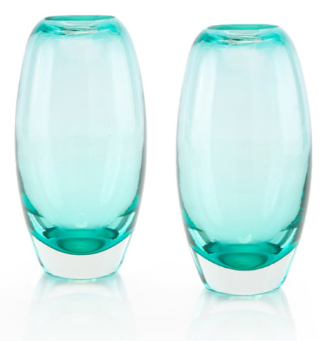 ROUND COLOURED GLASS VASES S/2