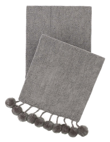 WEAVE THROW WITH COTTON POMPOMS/