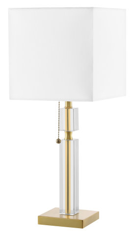 CRYSTAL AND METAL TABLE LAMP WITH A SQUARE SHADE AGED BRASS, WHITE SHADE