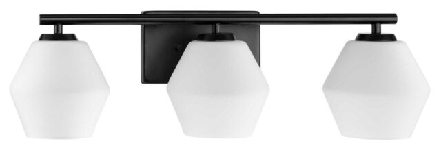 3 LIGHT MID-CENTURY MODERN STYLE VANITY FIXTURE W/ DECORATIVE GLASS MATTE BLACK - OPAL GLASS SHADE
