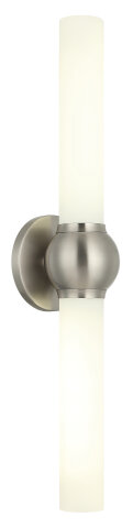 DOUBLE CYLINDER WALL SCONCE BRUSHED NICKEL FINISH WITH WHITE OPAL GLASS