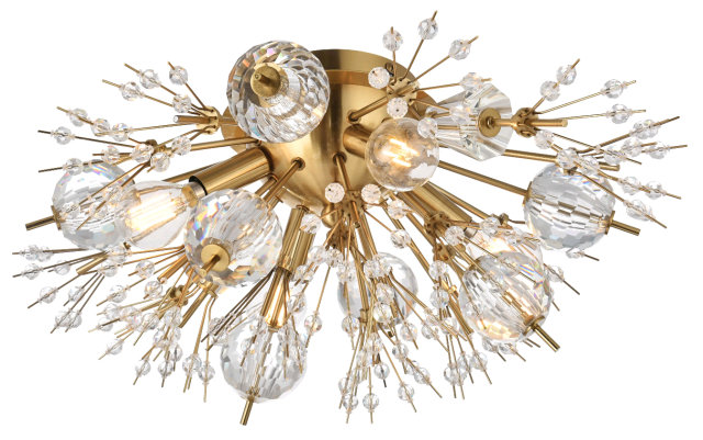 4LT MULTI CRYSTAL STEMMED DUAL CEILING/WALL MOUNT FIXTURE GOLD/CLEAR CRYSTAL