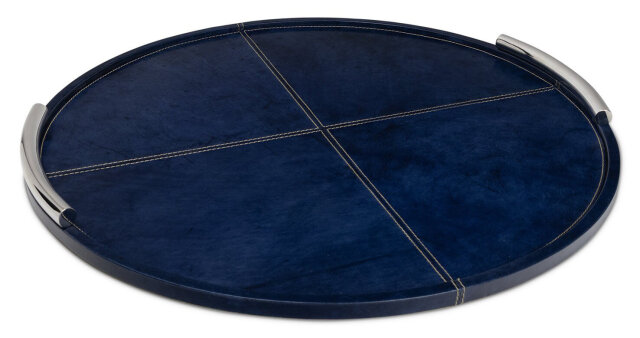 LARGE ROUND LEATHER TRAY WITH METAL