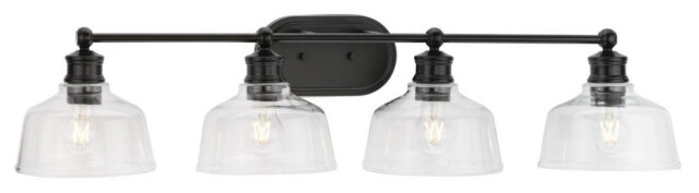 4 LIGHT VANITY FIXTURE WITH GLASS SHADES SUSPENDED BY A STRAIGHT BAR MATTE BLACK - CLEAR GLASS SHADES