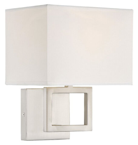 1 LT SQUARE WALL SCONCE WITH FABRIC SHADE BRUSHED NICKEL FINISH - WHITE FABRIC