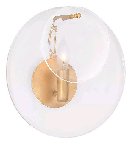 LOIRE SMALL ROUND WALL SCONCE WITH DOUBLE ROUND GLASS GILD CLEAR STRIE GLASS