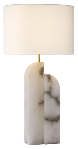 SAVOYE LARGE RIGHT TABLE LAMP ALABASTER 18" X 18" X 12" LINEN OVAL