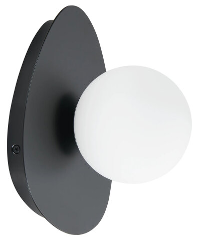 SINGLE LIGHT WALL SCONCE WITH GLOBE BLACK FINISH WHITE GLASS GLOBE