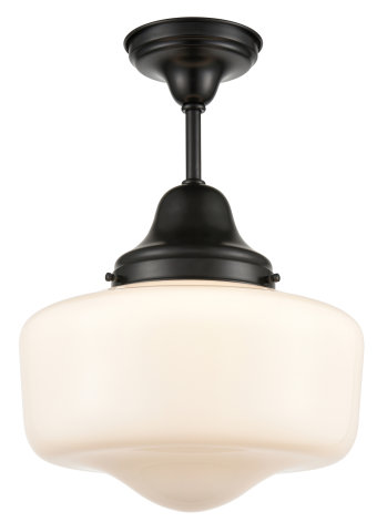 14" SINGLE LIGHT SCHOOLHOUSE SEMI FLUSH EBONY/OPAL GLASS