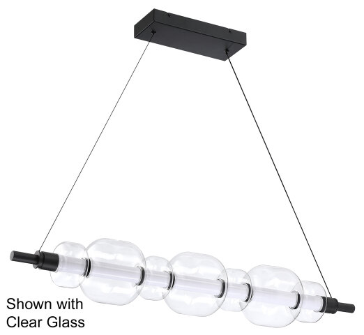 MULTI SIZE BLOWN GLASS LINEAR CHANDELIER BLACK FINSIH - CLEAR GLASS