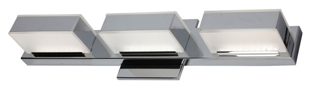 3 LIGHT LED VANITY FIXTURE WITH UP AND DOWN LIGHT SET WITHIN CUBES POLISHED CHROME, WHITE ACRYLIC 3000K - 1200 LUMENS - 80CRI - 30,000HRS