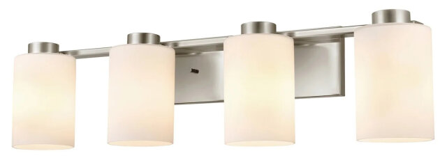 FOUR LIGHT CYLINDER VANITY BUFFED NICKEL OPAL GLASS