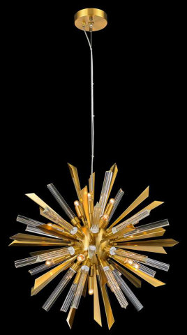 24" STARBURST PENDANT ANTIQUE BRASS & CLEAR SPHERES