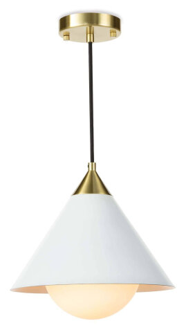 WHITE SHADE WITH NATURAL BRASS ACCENTS