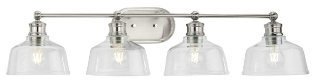 4 LIGHT VANITY FIXTURE WITH GLASS SHADES SUSPENDED BY A STRAIGHT BAR BRUSHED NICKEL - CLEAR GLASS SHADES