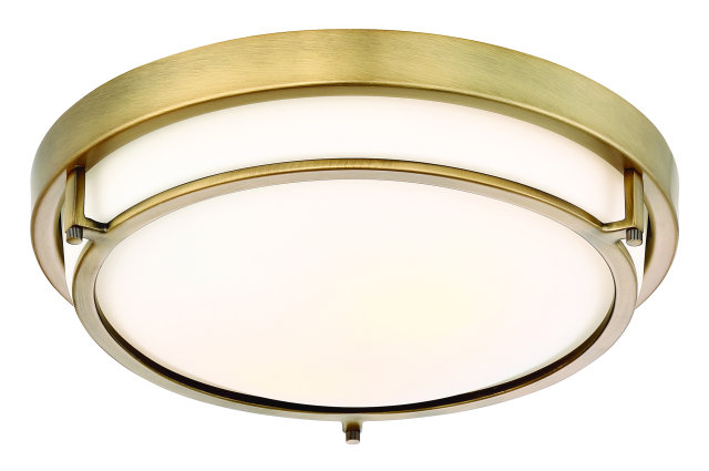 13" LOW PROFILE FLUSH MOUNT WITH FRAMED GLASS NATURAL BRASS FINISH - WHITE GLASS
