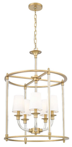 RUBBED BRASS, WHITE FABIRC SHADES