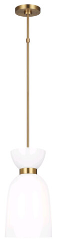 RETRO-INSPIRED BELL SHAPED PENDANT BURNISHED BRASS WITH MILK WHITE GLASS