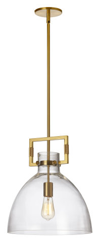 SINGLE LIGHT GLASS DOME PENDANT WITH METAL RECTANGULAR CUT OUT AGED BRASS/CLEAR GLASS