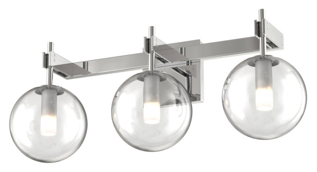 THREE LIGHT SPHERE GLASS VANITY CHROME WITH CLEAR GLASS