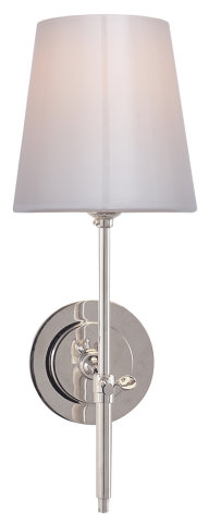 BRYANT WALL SCONCE WITH WHITE GLASS STEPPED BACKPLATE POLISHED NICKEL WHITE GLASS