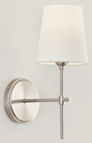 SCONCE W/ SLENDER STEM AND SHADE BRUSHED NICKEL FABRIC WHITE LINEN