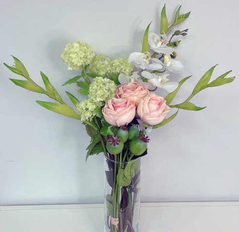 PHALENOPSIS, ROSE AND HELICONA